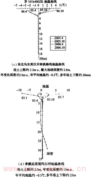 冻土年平均地温,地温年变化深度,活动层底面以下的冻土地温年平均值、年最高值和年最低值的总称。