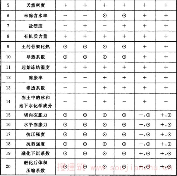 1 土的物理性质参数,应包括冻土的类别、描述、颗粒成分、液限、塑限、含冰率、含水率、干密度、土颗粒比重、饱和度和盐渍度等。