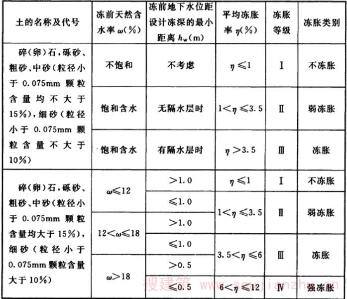 1.增加了季节冻土与季节融化层内粗颗粒土在饱和条件下的冻胀性分类;