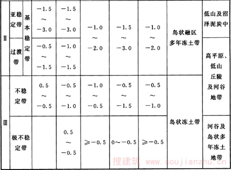 1.0.3 在季节冻土和多年冻土地区,由于地基在冻结与融化两种不同状态下,其力学性质、强度指标、变形特点与构造的热稳定性相差悬殊,并且从冻结状态过渡到融化状态时,在一般情况下将发生强度由大到小,变形则由小到大的巨大突变。因此,本规范规定,在进行各类建筑冻土工程地质勘察时,除应符合本规范的规定外,尚应符合国家现行有关标准、规范的规定,以确保工程安全与稳定。