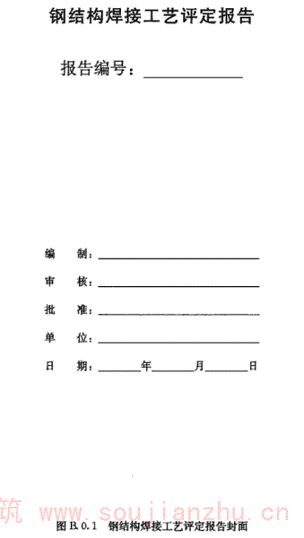 B.0.1 钢结构焊接工艺评定报告封面见图B.0.1。