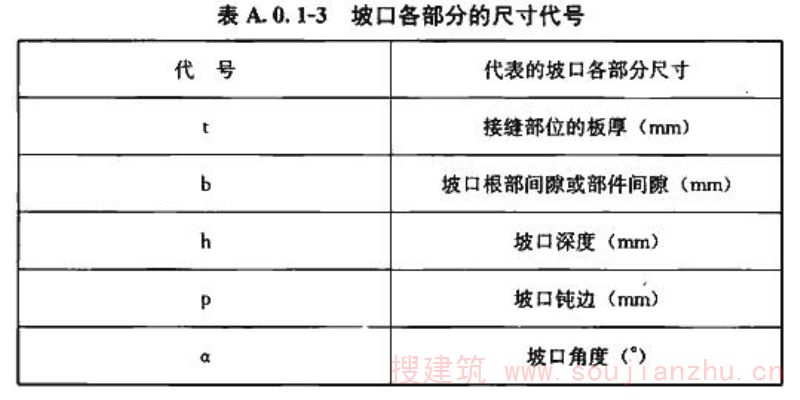 A.0.1 各种焊接方法及接头坡口形式尺寸代号和标记应符合下列规定: