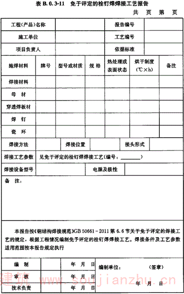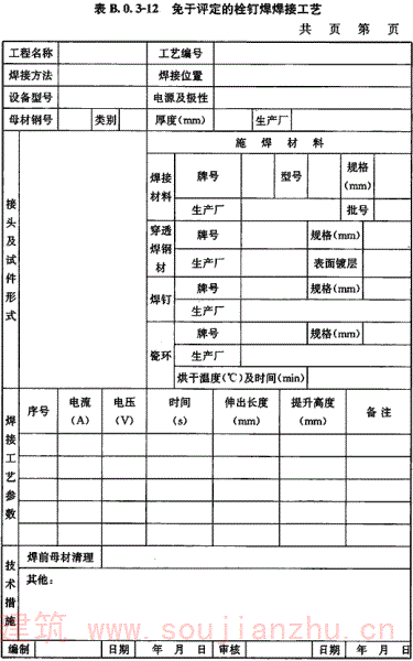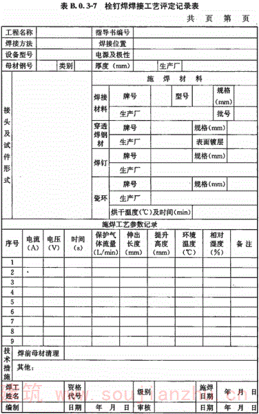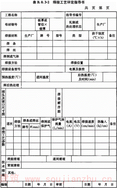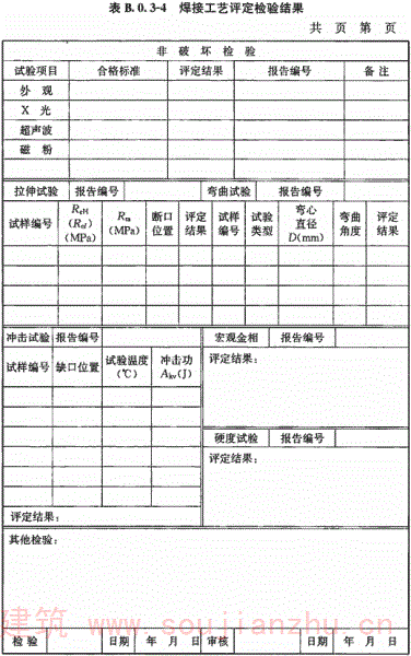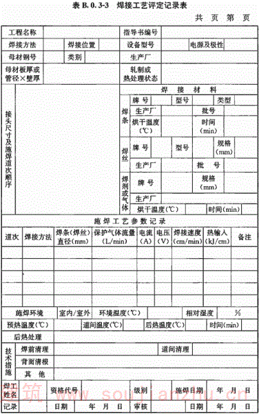 B.0.3 钢结构焊接工艺评定报告格式应符合表B.0.3-1~表B.0.3-12的规定。
