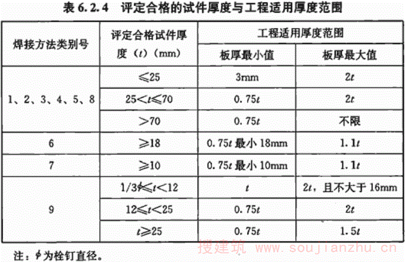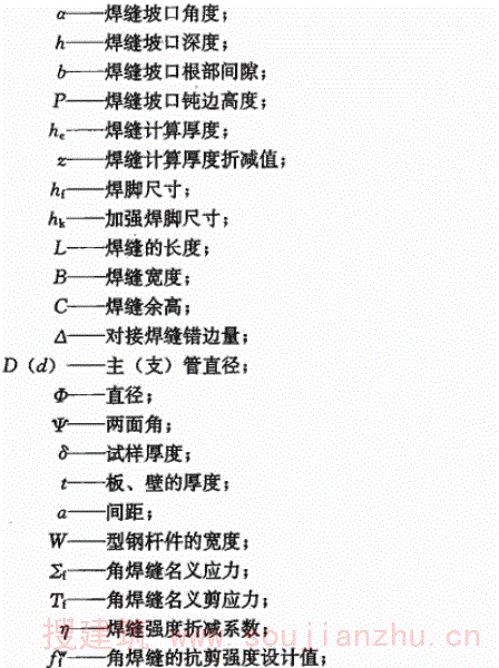 1.0.2 在荷载条件、钢材厚度以及焊接方法等方面规定了本规范的适用范围。 对于一般桁架或网架(壳)结构、多层和高层梁-柱框架结构的工业与民用建筑钢结构、公路桥梁钢结构、电站电力塔架、非压力容器罐体以及各种设备钢构架、工业炉窑罐壳体、照明塔架、通廊、工业管道支架、人行过街天桥或城市钢结构跨线桥等钢结构的焊接可参照本规范规定执行。 对于特殊技术要求领域的钢结构,根据设计要求和专门标准的规定补充特殊规定后,仍可参照本规范执行。 本条所列的焊接方法包括了目前我国钢结构制作、安装中广泛采用的焊接方法。
