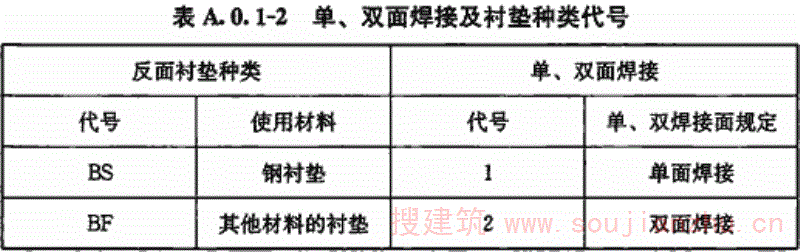 2 单、双面焊接及衬垫种类代号应符合表A.0.1-2的规定。