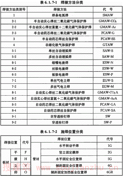 1 焊接方法及焊透种类代号应符合表A.0.1-1的规定。