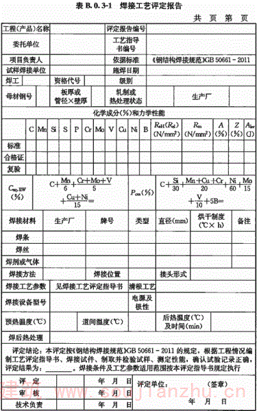 附录B 钢结构焊接工艺评定报告格式