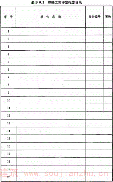 B.0.2 钢结构焊接工艺评定报告目录应符合表B.0.2的规定。