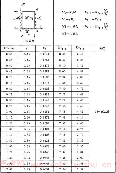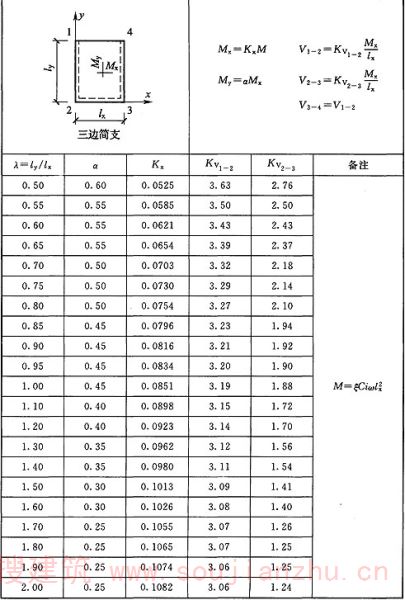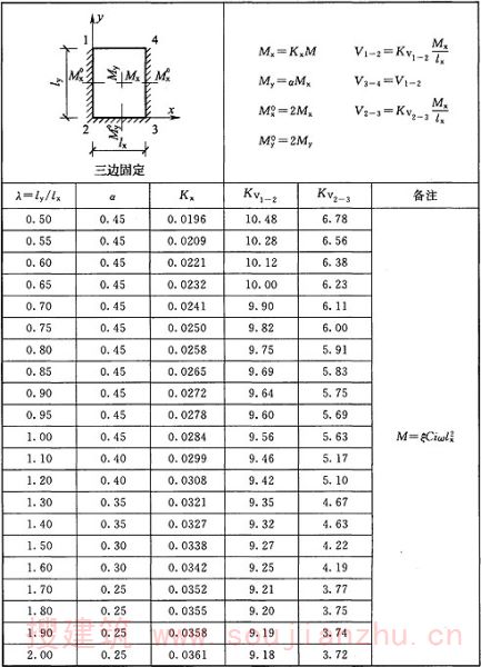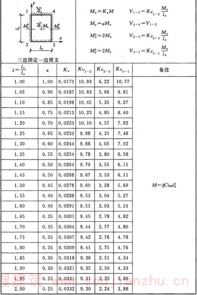 表E.0.2 三边支承板的弯矩系数和动反力系数