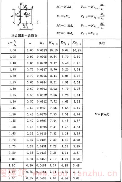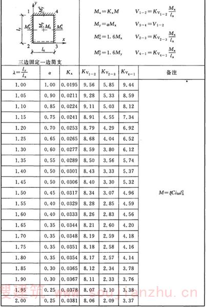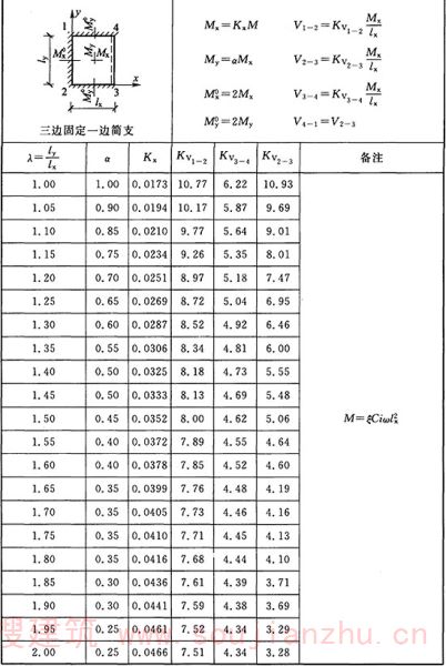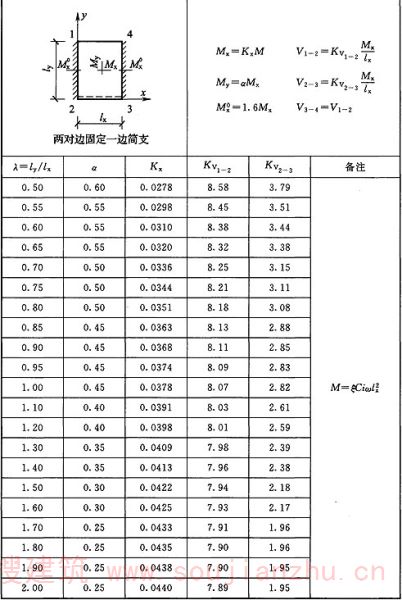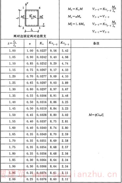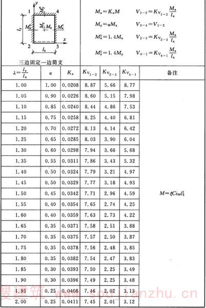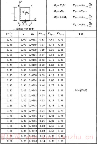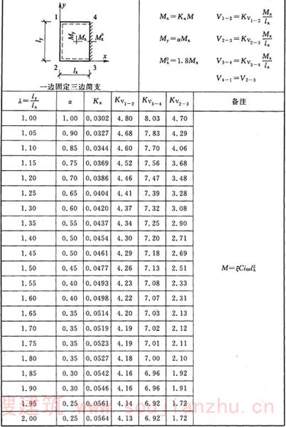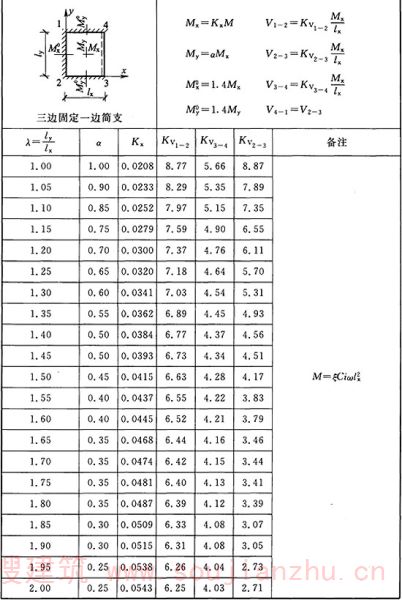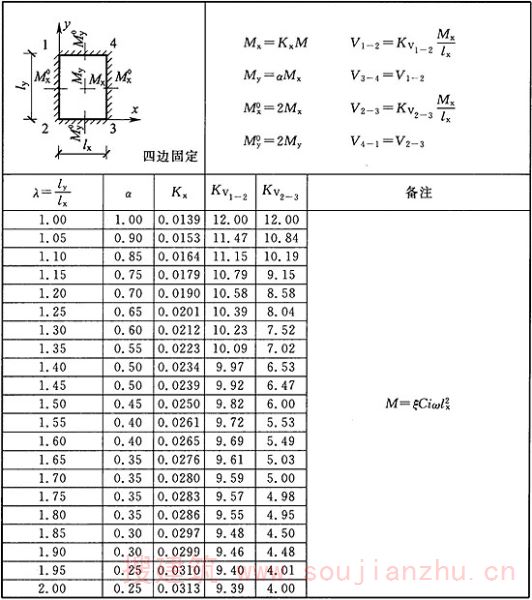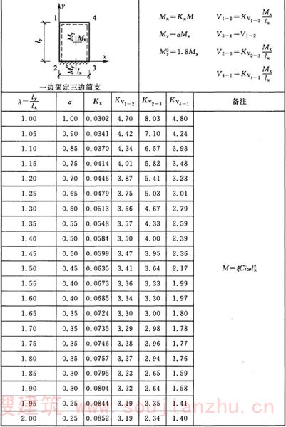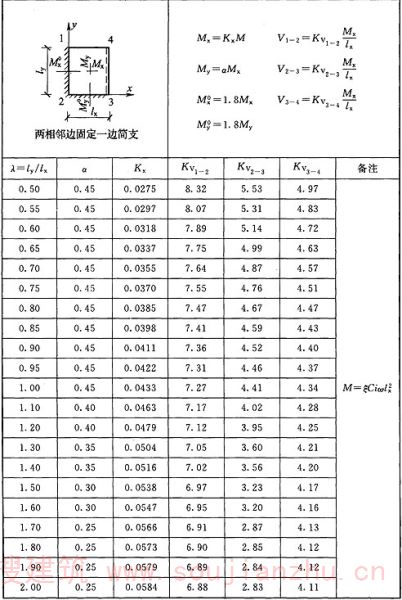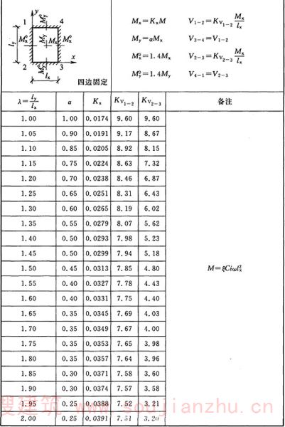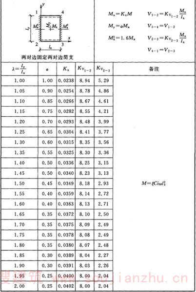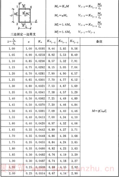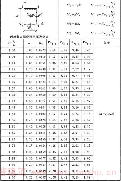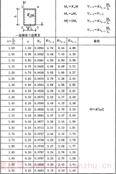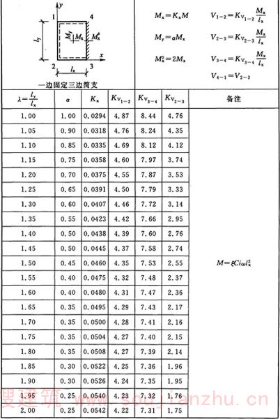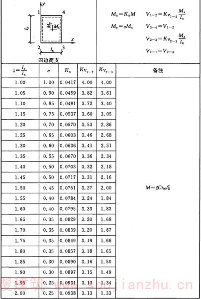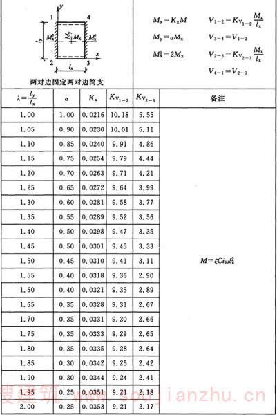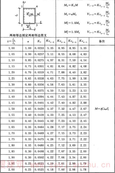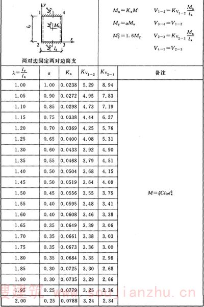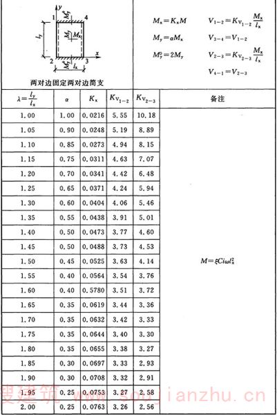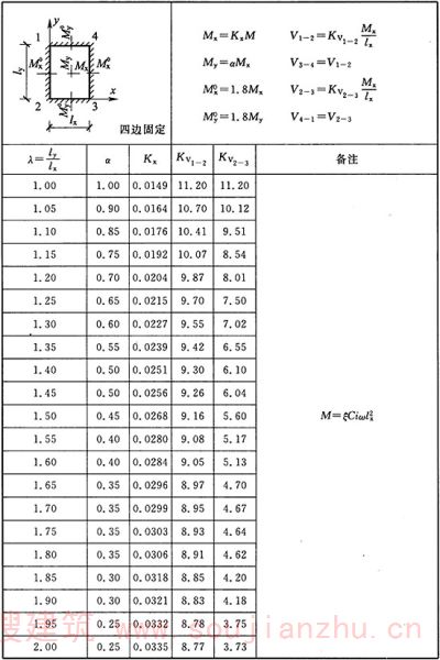 表E.0.1 四边支承板的弯矩系数和动反力系数