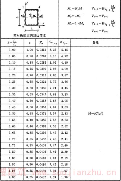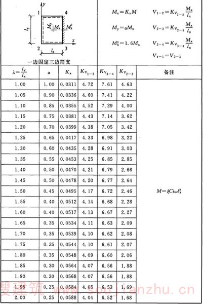 表E.0.4 单向支承板和两边支承板的弯矩系数和动反力系数