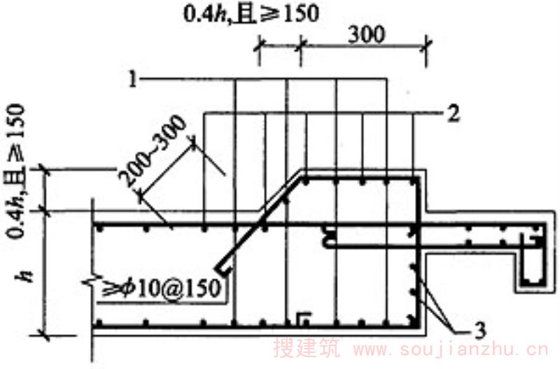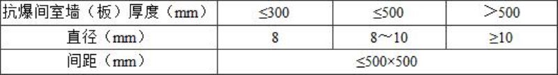 6 墙(板)尺寸、爆心距墙(板)距离与设计药量无法满足本条第5款的要求时,钢筋混凝土墙(板)应配置连续波浪形斜拉系筋,并应在两个边墙(板)的条形基础间设拉梁或在地面下设置整块底板等措施,且应同时满足下列公式的要求: