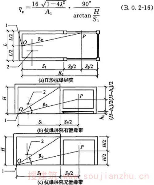B.0.2 П形抗爆屏院墙面承受抗内爆间泄出的空气冲击波冲量作用的能效系数η p 应符合下列规定:
