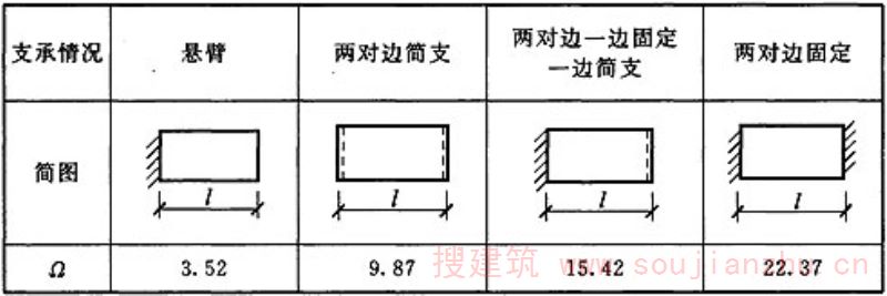 表C.0.4 单向悬臂和两对边支承薄板自振圆频率系数Ω
