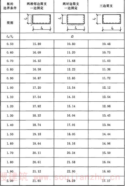 表C.0.2 三边支承薄板自振圆频率系数Ω