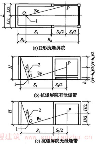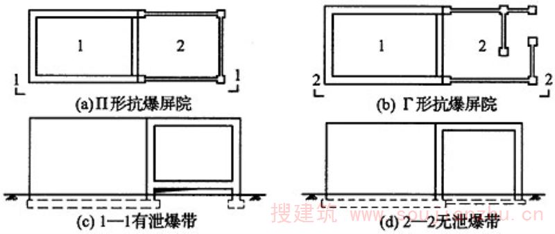 2 抗爆间室泄爆面外应设置П形和Γ形的抗爆屏院。