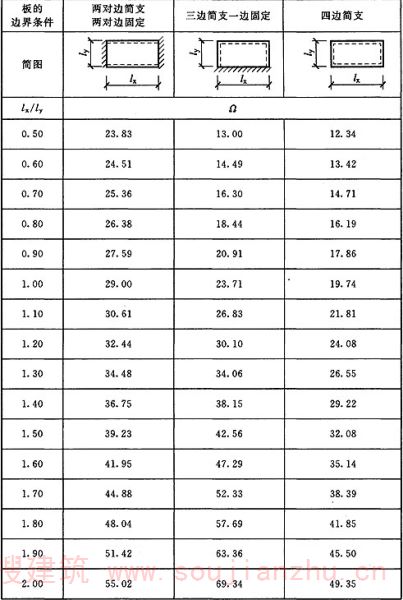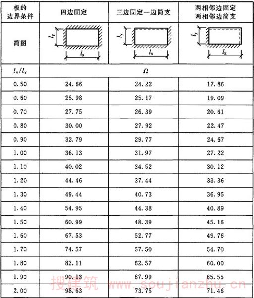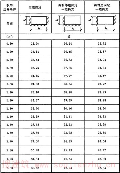 C.0.1 四边支承薄板自振圆频率系数Ω,可按表C.0.1查取。