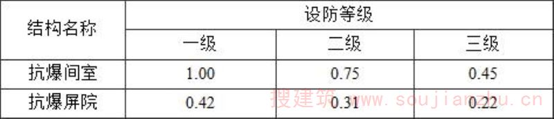 表A.0.2 火工品厂和引信厂抗爆间室设防等级