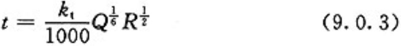 9.0.3 空气冲击波正压作用于抗爆门面上的等效时间,可按下式计算: