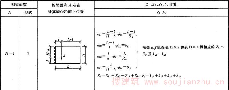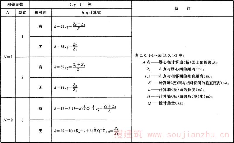 D.0.1 系数k、能效系数η及角度和距离影响系数k α 计算,可按表D.0.1-1~表D.0.1-3方法计算。