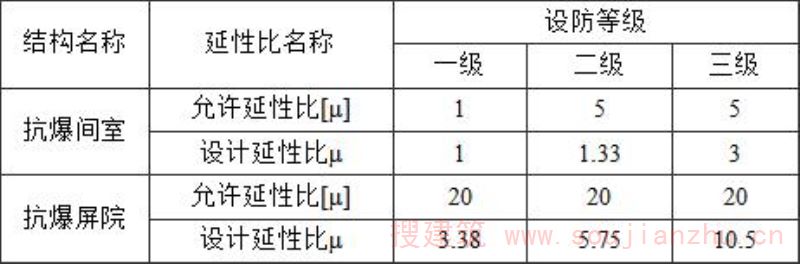 3.0.1 抗爆间室(泄爆面除外)在设计药量爆炸荷载作用下,不应产生爆炸飞散、爆炸震塌破坏和爆炸破片的穿透破坏。