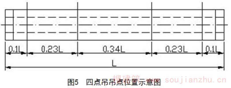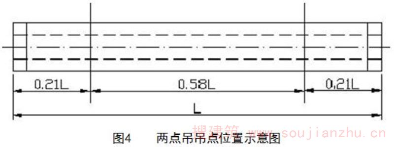 9.1.4.2 长度大于15m且小于30m的管桩或拼接桩,应按图5采用四点吊。