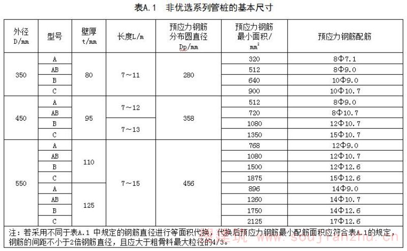 A.1 除表1中规定的管桩基本规格外,非优选系列管桩的基本尺寸见表A.1。