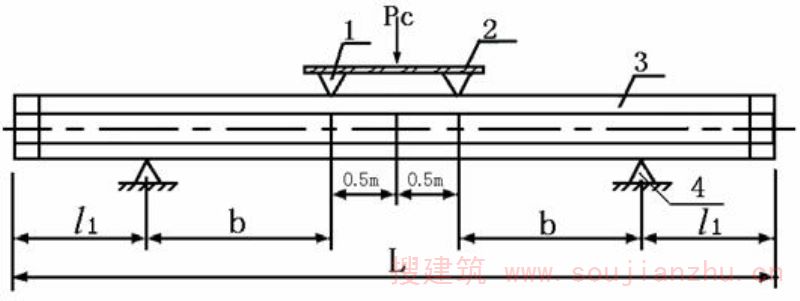 C.2.1 管桩的抗剪试验采用图C.1所示对称加载装置,其中,P的方向可垂直于地面,也可平行于地面(管桩的轴线均与地面平行)。剪跨b取1.0D,试件悬出长度ι 1 取(1.25~2.0)D。