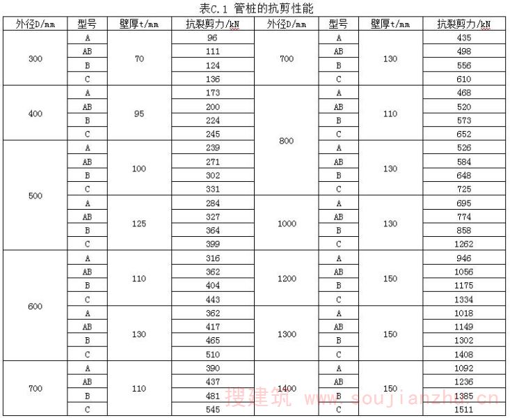 C.1.2 管桩应按C.2进行抗剪性能试验,当加载至表C.1中的抗裂剪力时,桩身不得出现裂缝。