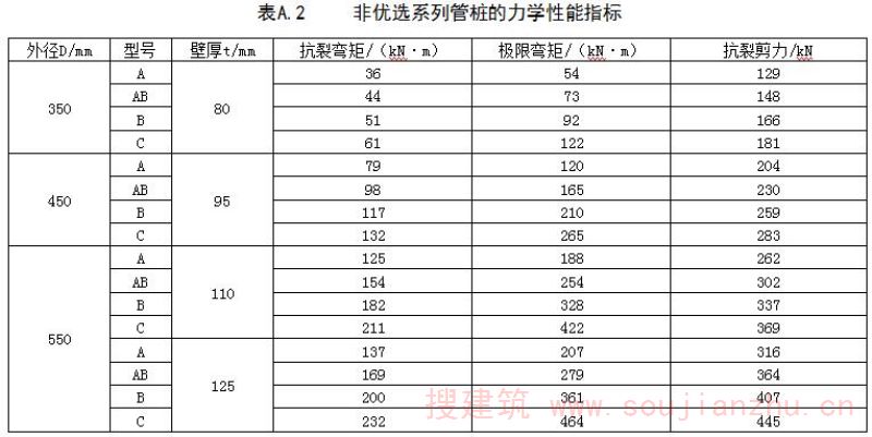 附录A非优选系列管桩的基本尺寸和力学性能指标