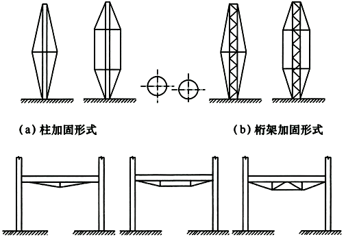 B.0.1 受拉构件的截面加固可采用规定的形式(图B.0.1)或其他形式。
