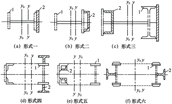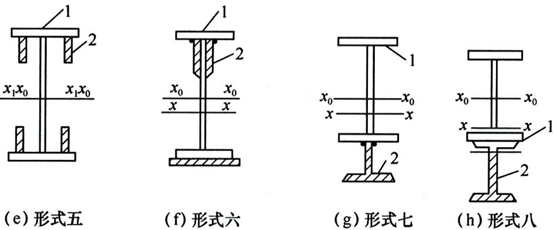 B.0.4 弯矩不变号偏心受力构件的截面加固可采用不对称的形式(图B.0.4a~图B.0.4e)。若弯矩可能变号,应采用对称的截面形式(图B.0.4f)。