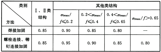 1.0.3 本条主要是对本标准在实施中与其他有关标准配套使用的关系作出规定。钢结构加固前,应根据建筑物的种类,分别按现行国家标准《工业建筑可靠性鉴定标准》GB 50144和《民用建筑可靠性鉴定标准》GB 50292进行检测或鉴定。当与抗震加固结合进行时,尚应按现行国家标准《建筑抗震设计规范》GB 50011或《构筑物抗震鉴定标准》GB 50117等进行抗震能力鉴定。