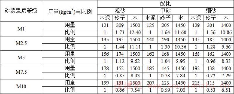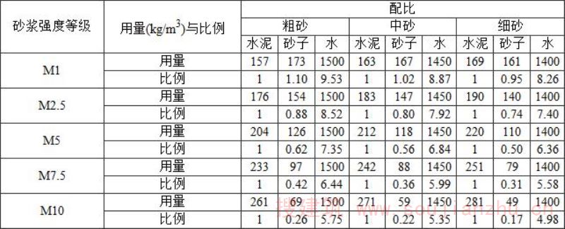 附录G 砂浆配合比