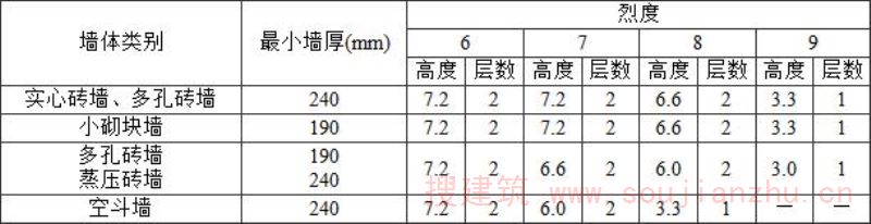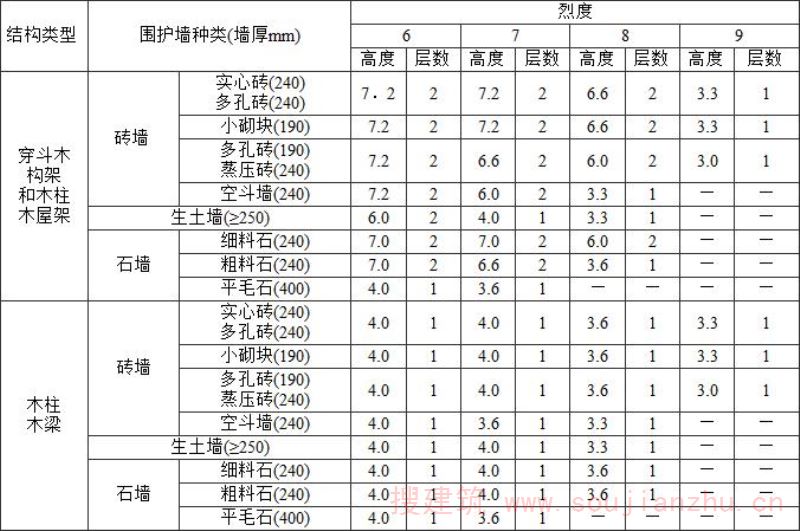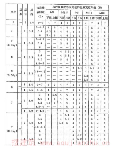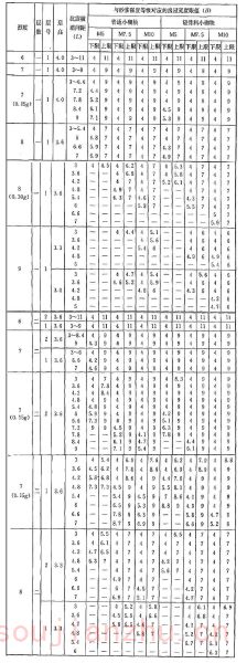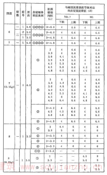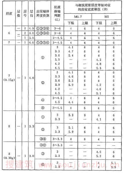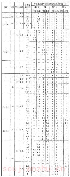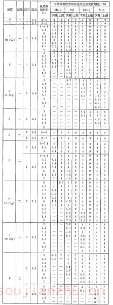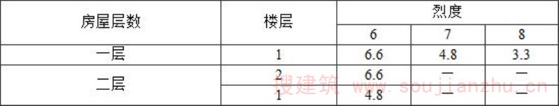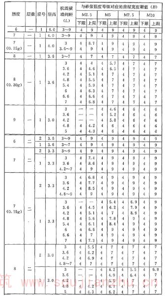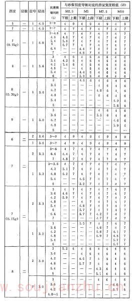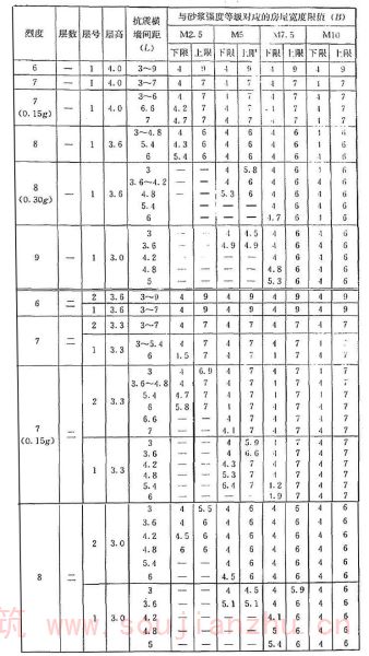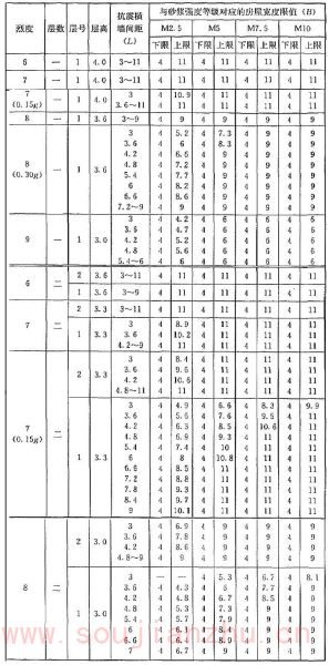 2 表中为“-”者,表示采用该强度等级砂浆(泥浆)砌筑墙体的房屋,其纵、横向墙体抗震承载力不能满足对应的设防烈度地震作用的要求,应提高砌筑砂浆(泥浆)强度等级。