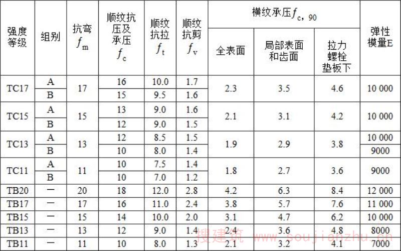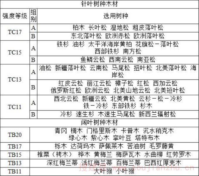 表F.0.4-1 木材的强度等级
