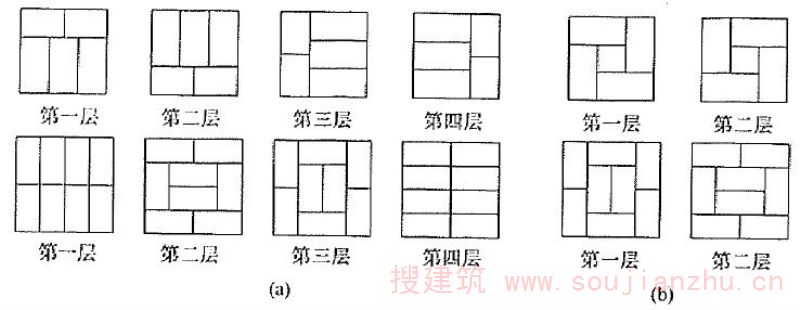 注:墙体厚度分别指:①外墙400mm,内横墙250mm;②外墙500mm,内横墙300mm;③外墙700mm,内横墙500mm;④内外墙均为400mm。
