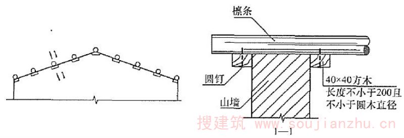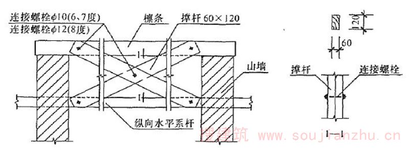 沿房屋纵向在跨中屋檐高度处设置的联系杆件,通常采用木杆或角钢制作。