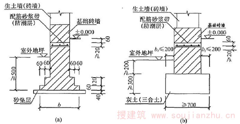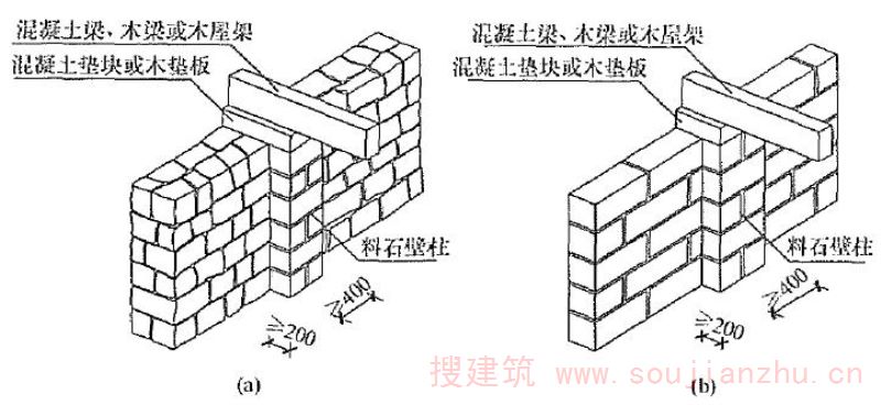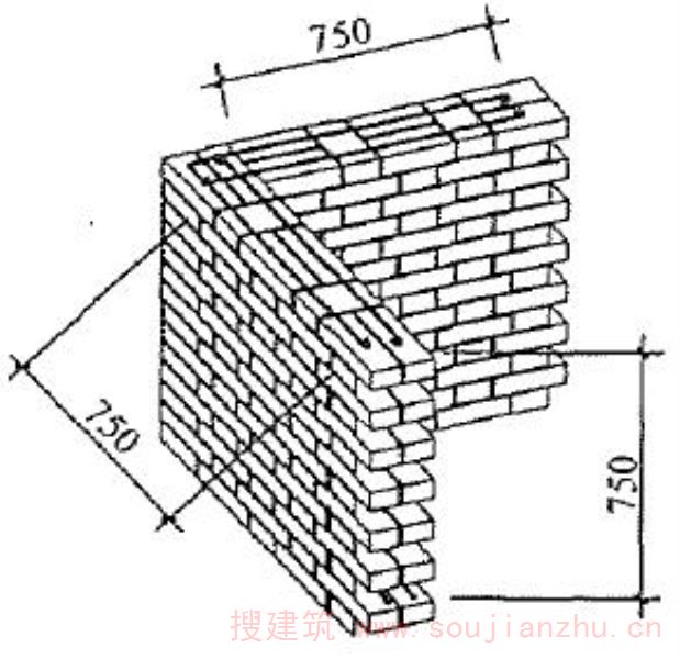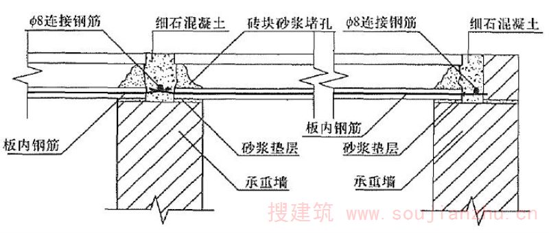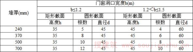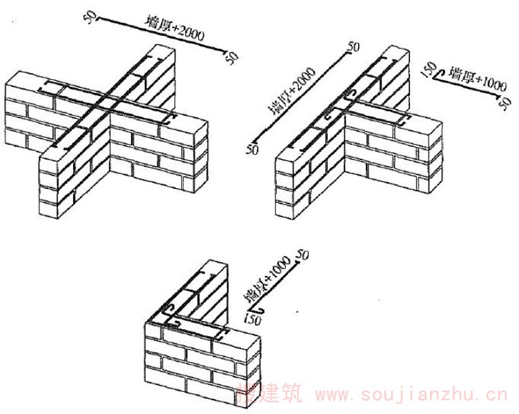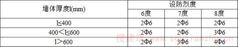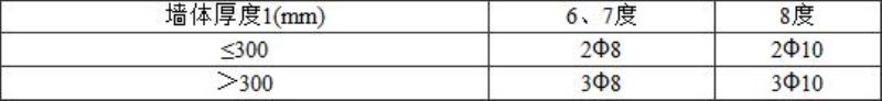 为加强结构整体性和提高墙体的抗倒塌能力,在承重墙体沿竖向的中部设置50~60mm厚的水平砂浆带,砂浆带中配置通长水平钢筋。