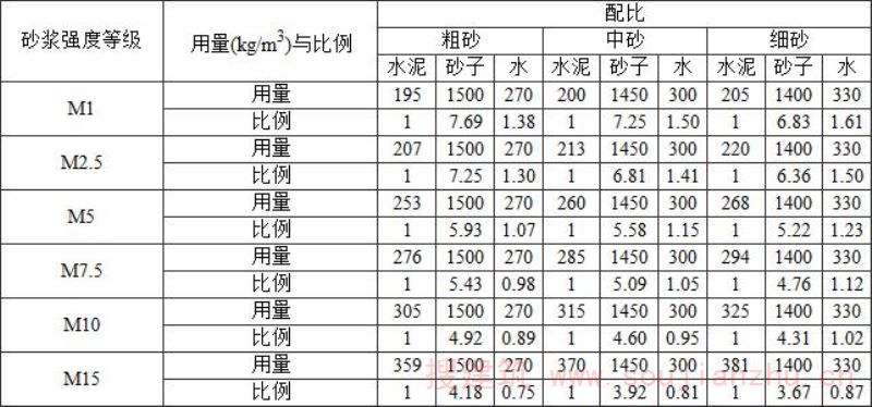 表G.1 水泥砂浆配合比(32.5级水泥)