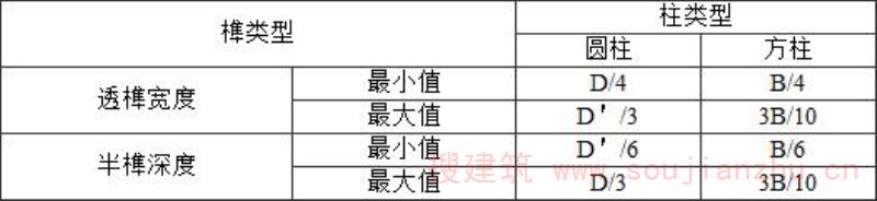 D'——圆形截面木柱开榫一端直径;