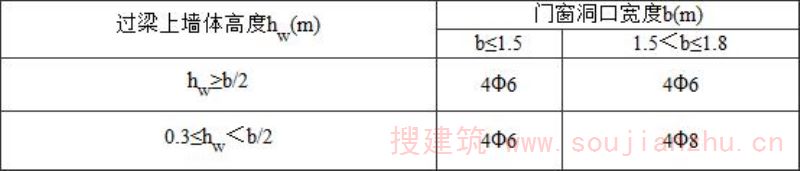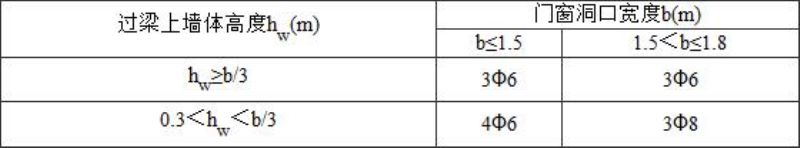 对砖、混凝土小型空心砌块和土坯砌体,当梁、板下的墙体高度(h w )小于过梁的净跨(l n )时,应计入梁、板传来的荷载。当梁、板下的墙体高度(h w )不小于过梁净跨(l n )时,可不考虑梁、板荷载。