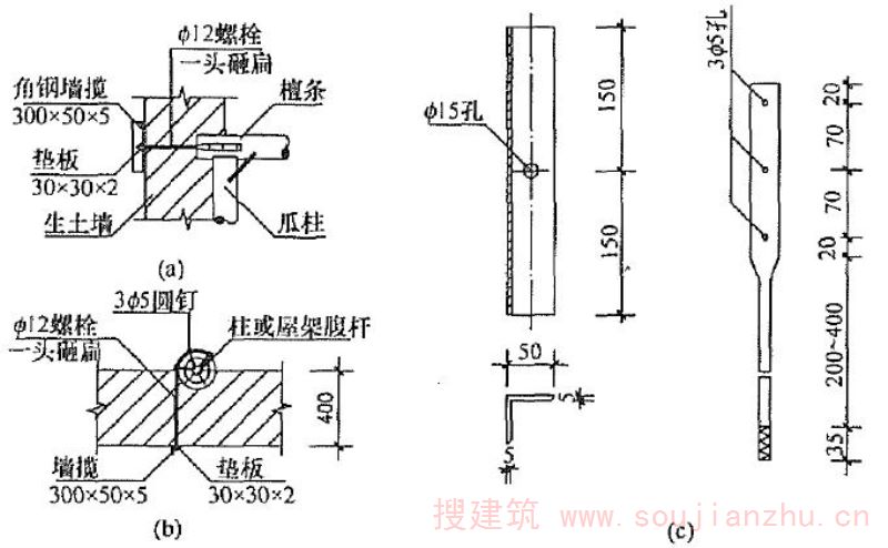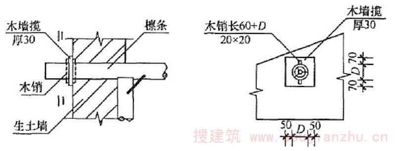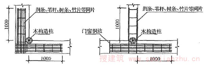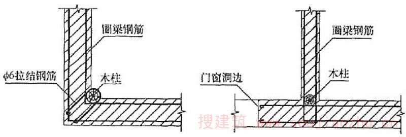 为加强结构整体性和提高墙体的抗倒塌能力,在房屋墙体的规定部位设置的木柱。