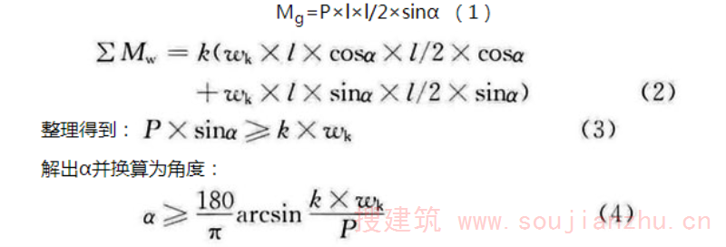 大模板竖向停放,利用模板自重平衡风载保持稳定时,面板与垂线的夹角。