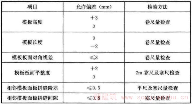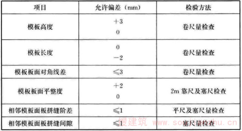6.2.2 模板进场后逐项检查项目应符合表6.2.2的规定。