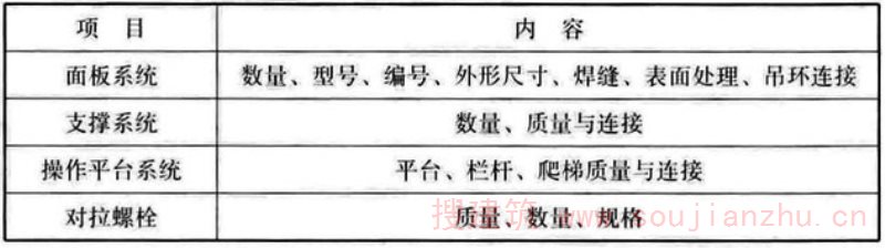 6.4.2 大模板安装验收时,应对下列项目进行复查确认: