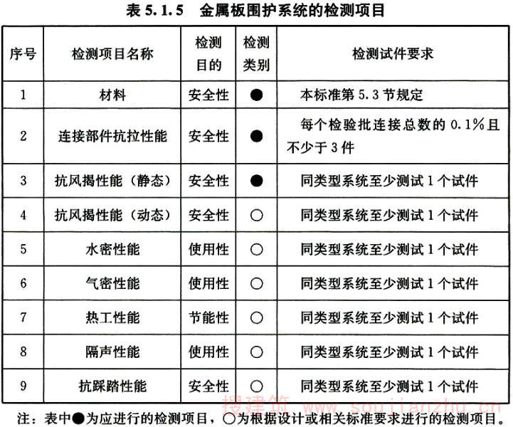 用于评定建筑金属板围护系统及其组成部分可靠性的项目。