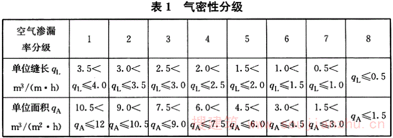q A ——10Pa压力差下单位面积空气渗透率[m 3 /(m 2 ·h)]。
