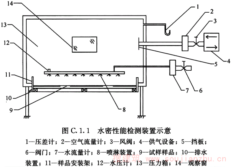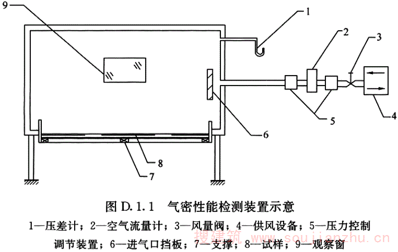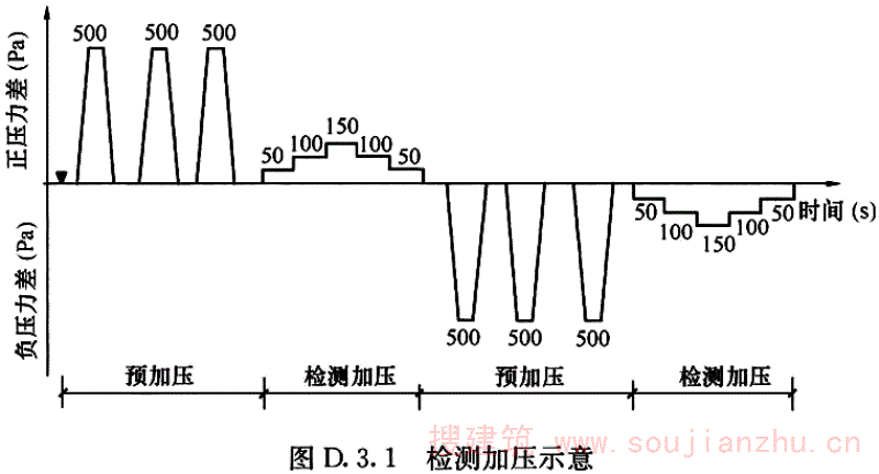 D.3.2 检测前应采取密封措施,充分密封试件待测缝隙,然后按照本标准图D.3.1检测加压部分逐级加压,每级压力作用时间约为10s,先逐级正压,后逐级负压。测量记录各级附加空气渗漏量。除去所有密封措施,重复上述步骤测量总空气渗透量。