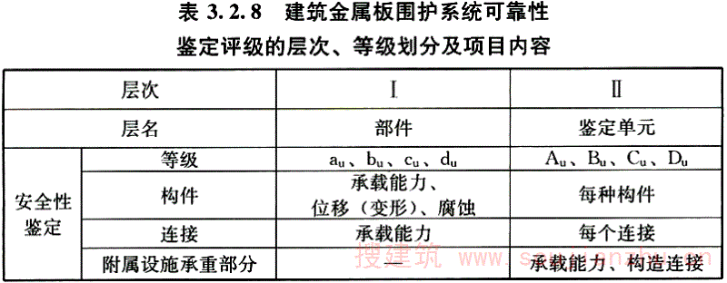 根据检查、检测和分析验算结果,对建筑金属板围护系统的安全性和使用性按照规定的标准和方法所进行的评价。